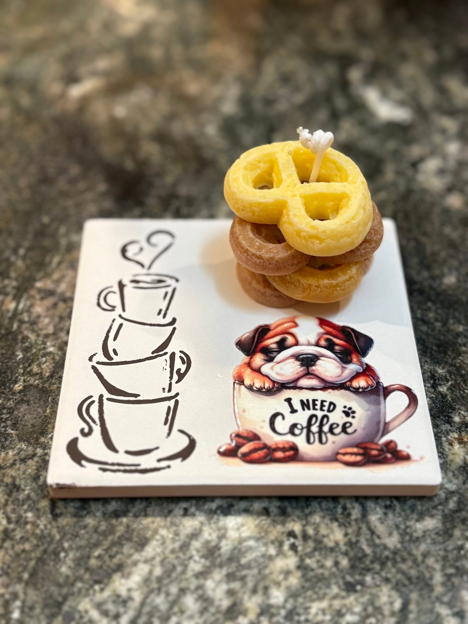 Ceramic Coaster hand painted and decorated with candle cookies.
