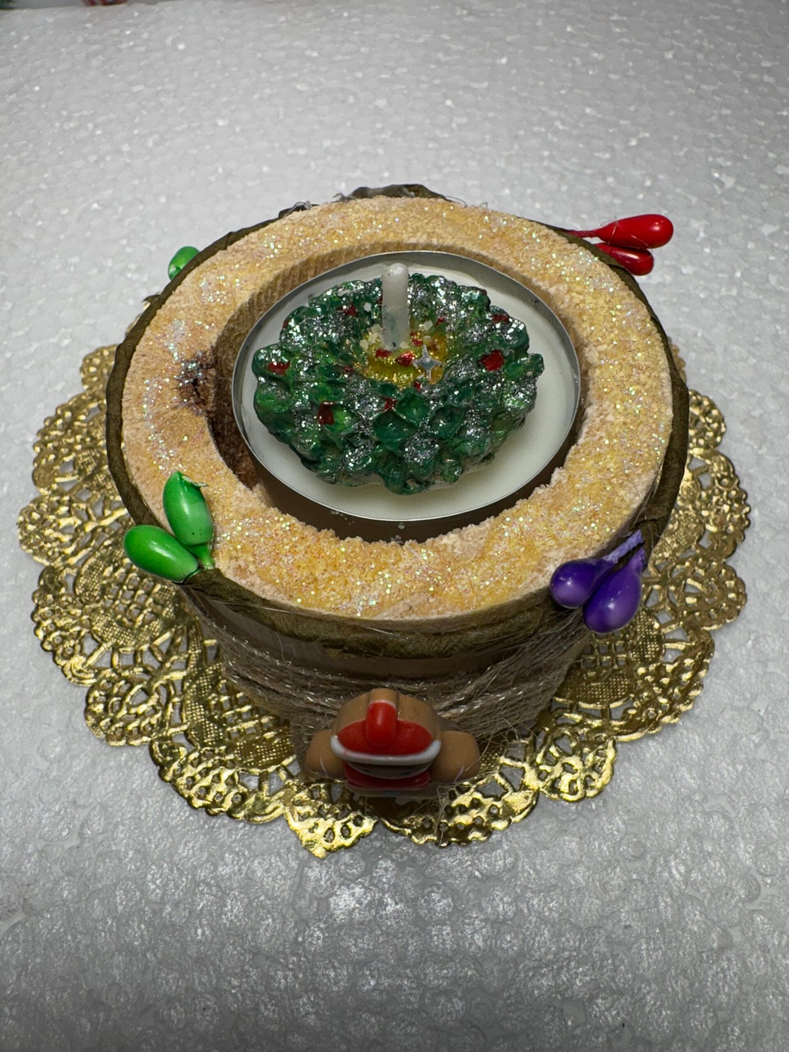 Little Wreath in a wood candleholder