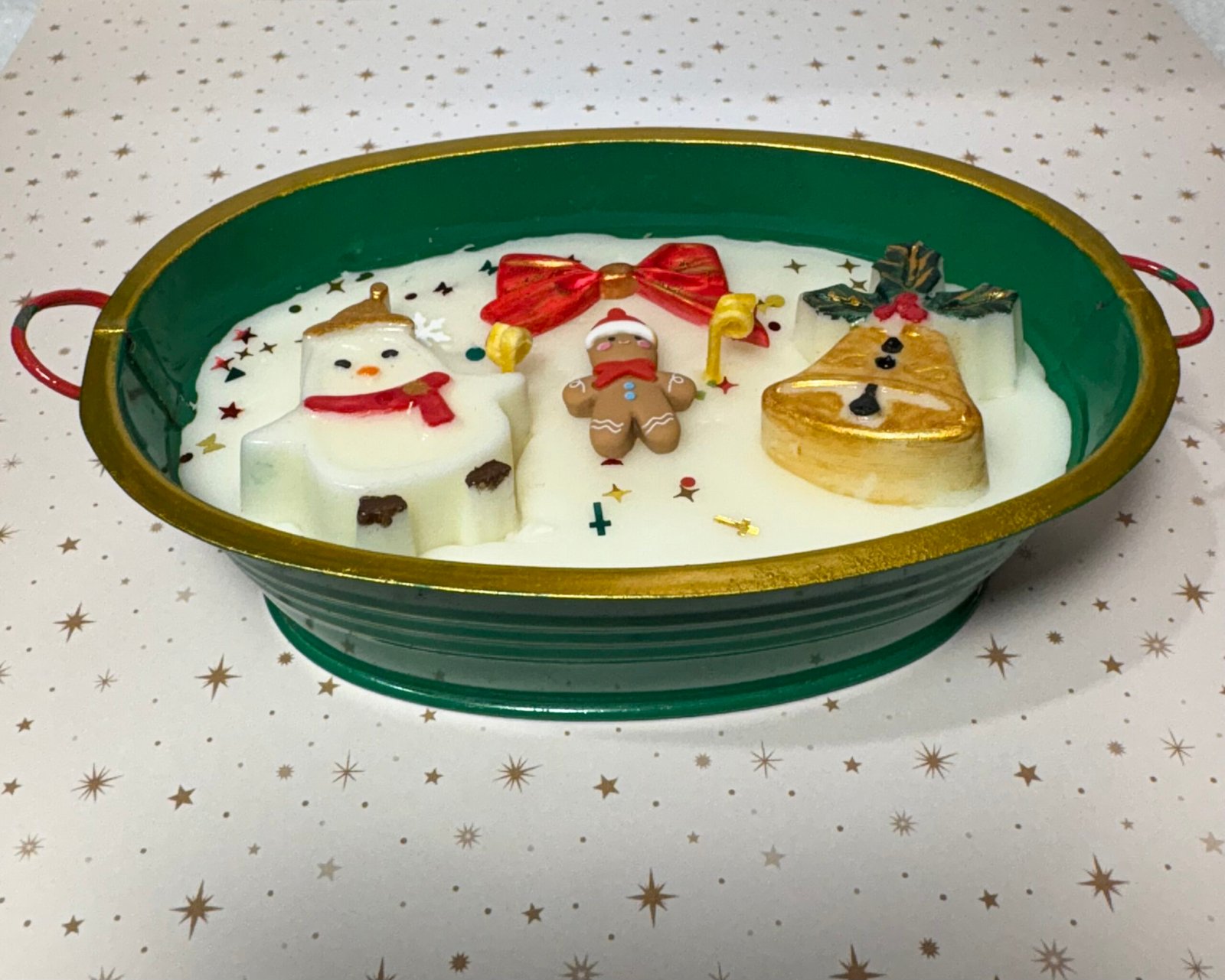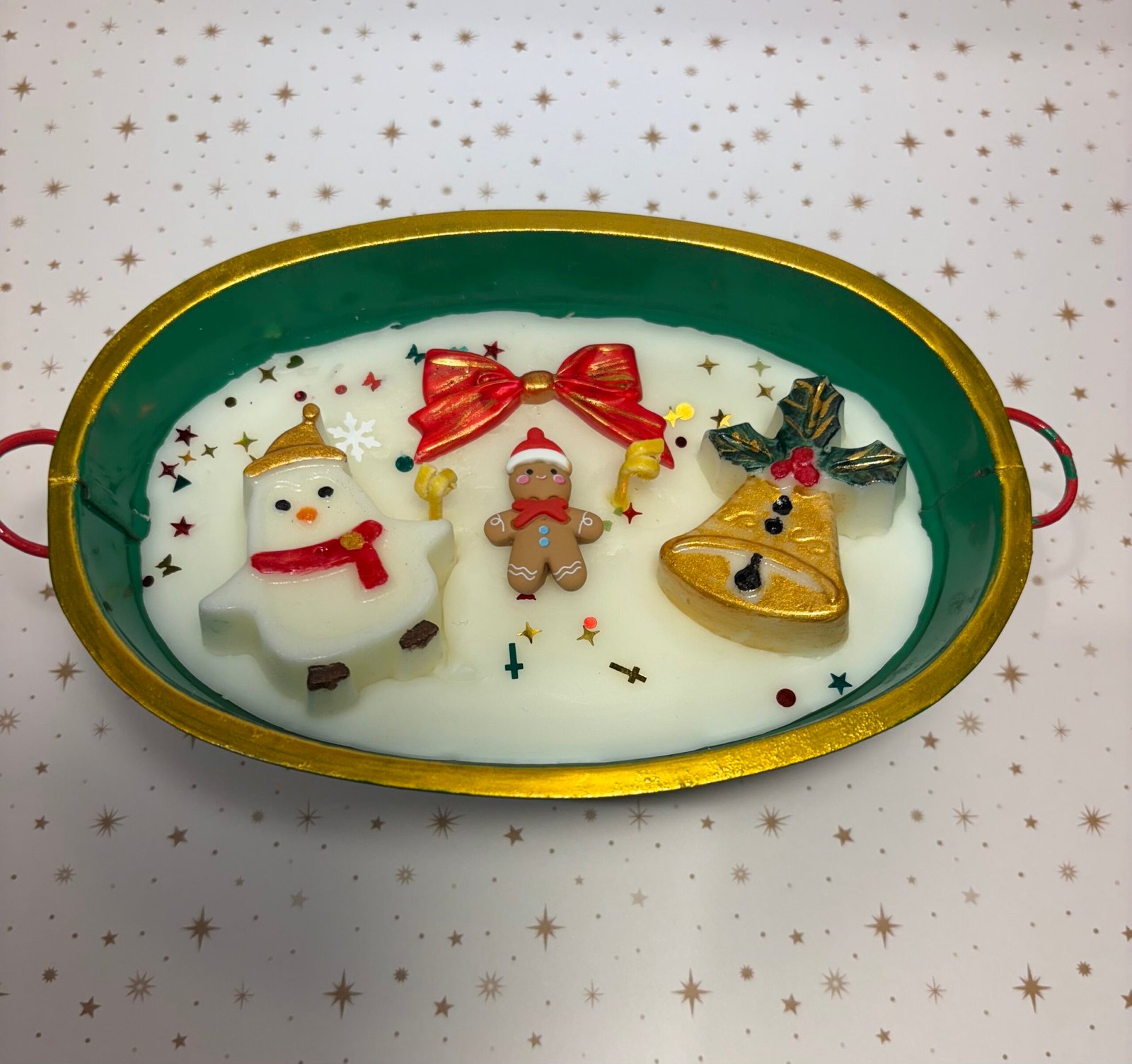 Let it snow. this hand-poured candle is elegantly decorated with hand-painted fun festive ornaments. It lights up to your table in this holy season 🀢🏻 πŸŽ„